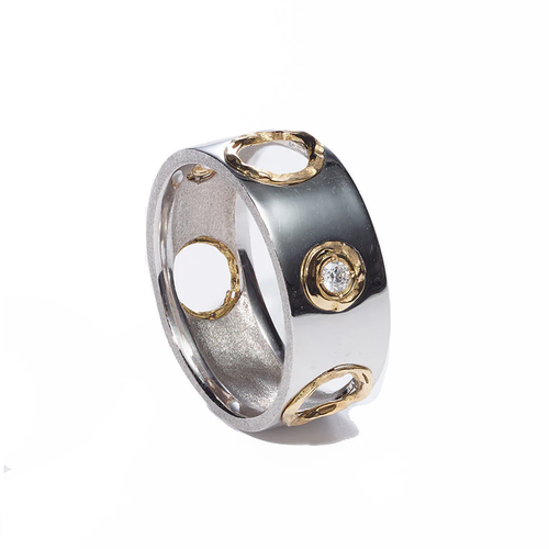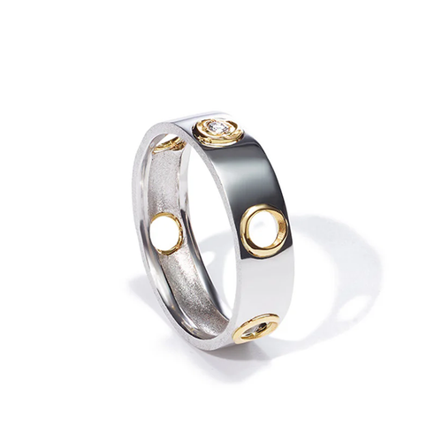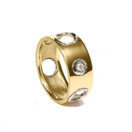 ENオープンダイヤモンドリングは、ミラモアのマスキュリンでフェミニンな美学を完璧に表現しています。 指先まで見える金継ぎの穴が特徴的なリングです。 両サイドにダイヤモンドをあしらったリングは、8mmと5mmの2サイズ展開。 美しさと耐久性を兼ね備えたこのシグネチャーピースは、まさに金継ぎの哲学を体現しています。