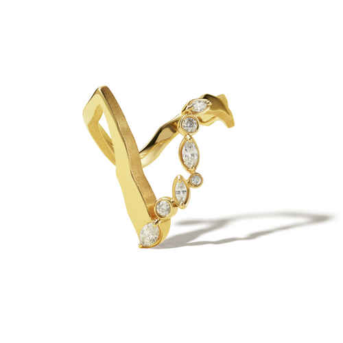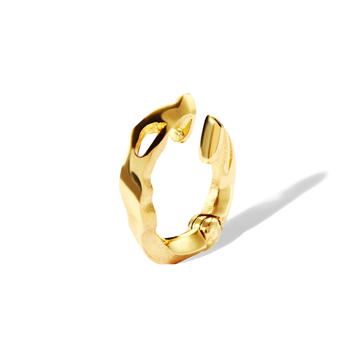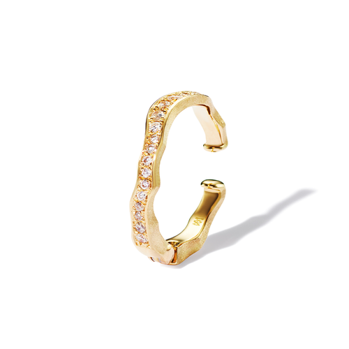 イエローゴールドの曲線が生えるKINTSUGI ENフープピアス。縁であり輪を意味する「EN」シリーズのピアスは、グラマラスなKINTSUGIのラインが耳元で輝きます。存在感とその輝きを活かして、パーティやデイリーなスタイルをさらにクラッシーに。このMサイズのほかに、Sサイズのご用意もあります。