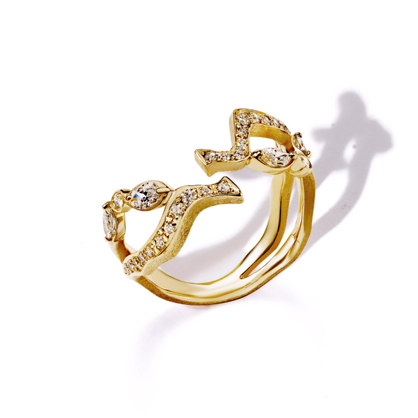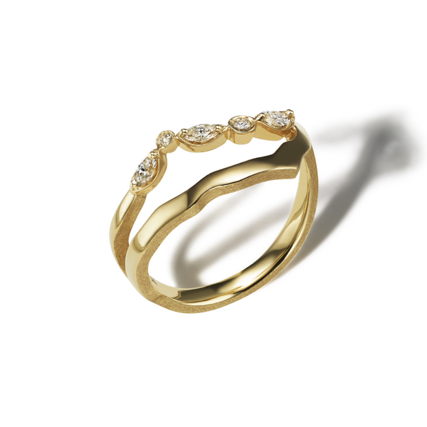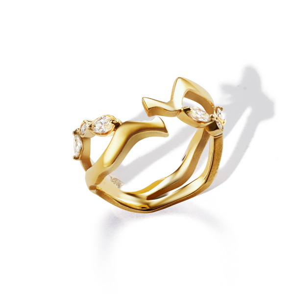 「KINTSUGI」コレクションは、再生の美学をジュエリーによって表現しました。このコレクションは、割れた陶磁器を漆で修復し、金粉で継ぐ、日本古来の技法「金継ぎ」からインスピレーションを得たもの。私たち一人ひとりが持つコンプレックスや「壊れた部分」を受け入れ、それを隠すのではなく、ジュエリーを身につけることで美しく継ぎ合わせ、個々の自分らしさを紡ぎ出す哲学を込めました。日本の職人による手仕事から生まれた18金の繊細かつダイナミックな金継ぎラインは、身につけることで「ジュエリーで継がれる」という新しい美しさを約束します。ミラモアは、傷を持ちつつも生きる姿にある強さと魅力の本質を讃えます。