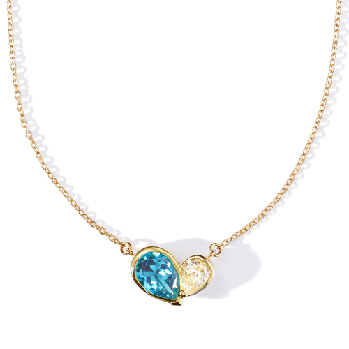 デュオハートカクテルリングのミニサイズが、このミニカクテルリング。左右非対称にセットしたブルートパーズとダイヤモンドは、個性的な輝きで無二の美しさを演出。ミラモアの新アイコンともなるシグネチャーリングで、指先を個性的に演出して。